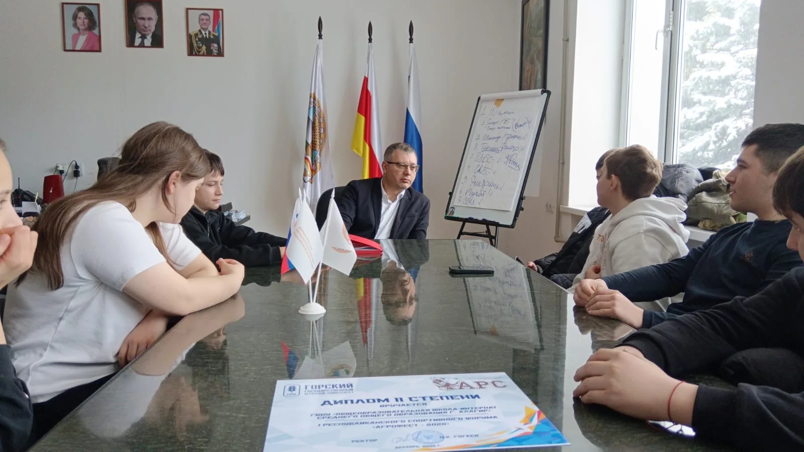 2 ноября 2024 года учащиеся 7 аграрного класса приняли участие во Всероссийской акции "Я - Россиянин". При содействии Горского ГАУ ребята высадили  деревья - заложили фруктовый сад. Богатым опытом поделился главный агроном плодоовощного комплекса Езеев А.Б.