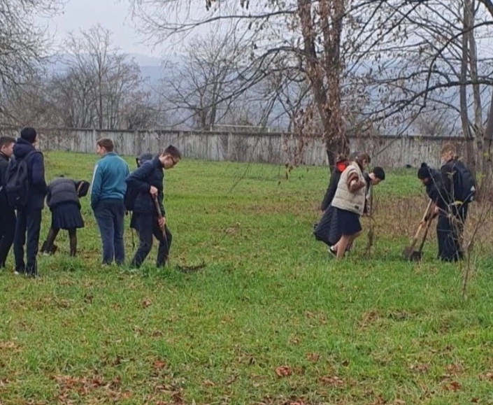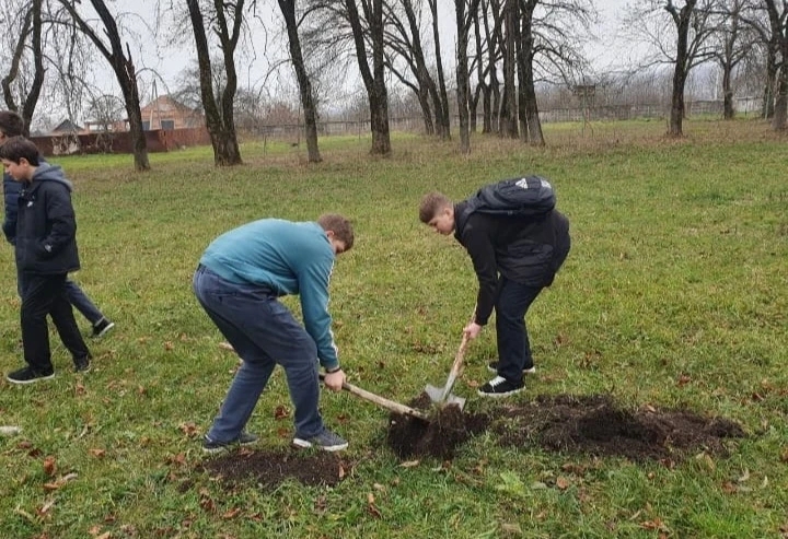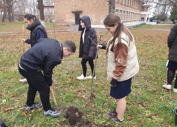 25 ноября 2025 года ученики аграрного класса высадили фруктовые деревья во дворе школы под руководством учителя биологии Коковой Р.А.